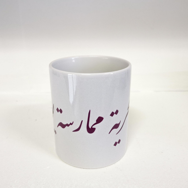 Tazza con la scritta : La libertà una pratica quotidiana (الحرية ممارسة يومية)